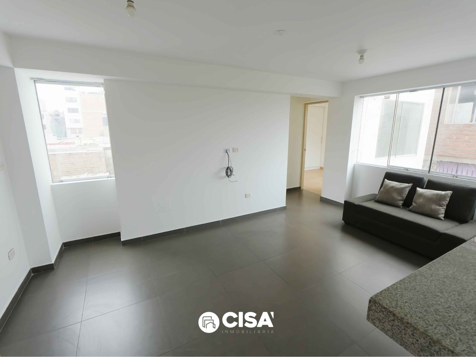 Sala, piso con porcelanato anti deslizante, alto tránsito,