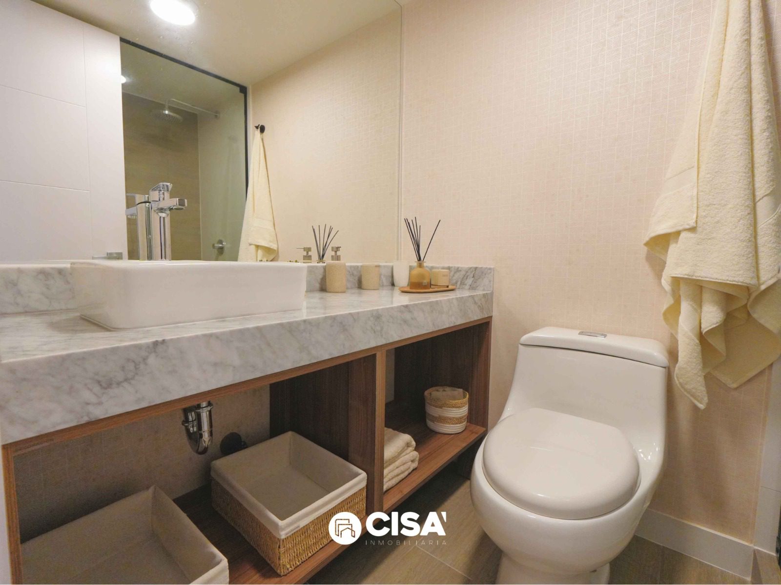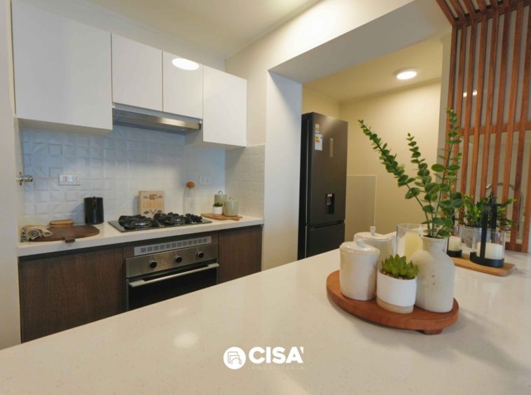 Tableros de cuarzo blanco en cocina y baños