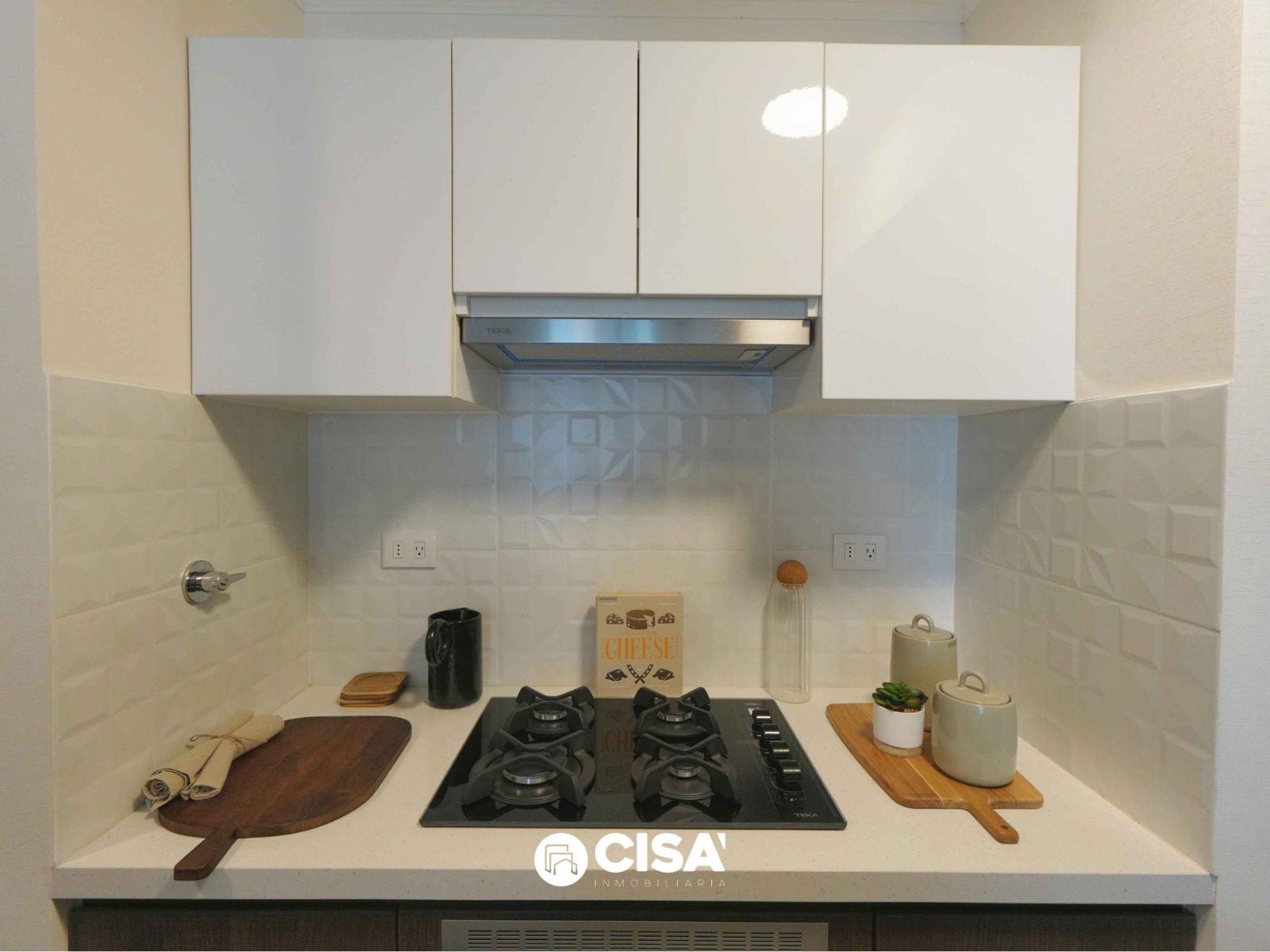 Cocina equipada con encimera y campana