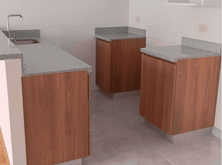 *Kitchenette con reposteros altos y bajos, mesa de granito