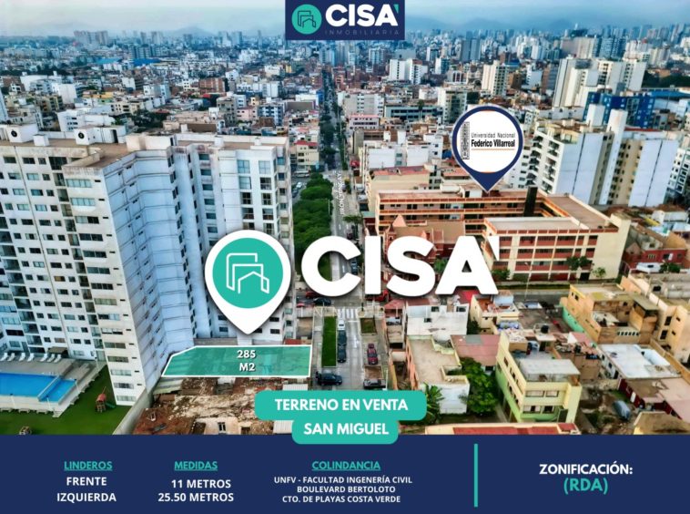 Oportunidad de inversión inmobiliaria en Lima: se vende terreno de 285 m² ubicado en Jr. Diego de Agüero (ex Yungay), San Miguel, con 11 metros de frente y zonificación RDA, ideal para proyectos multifamiliares, residenciales o de renta.